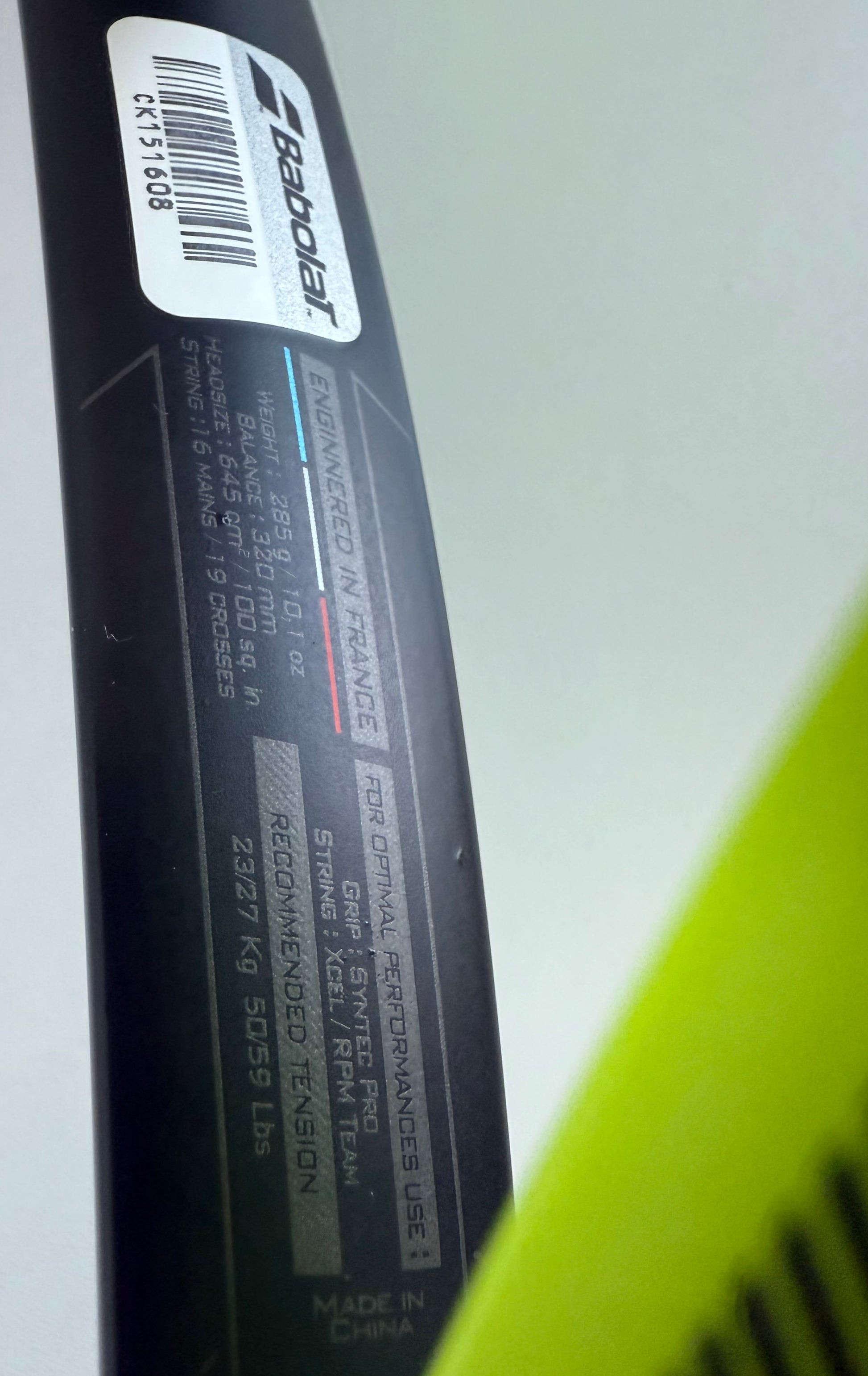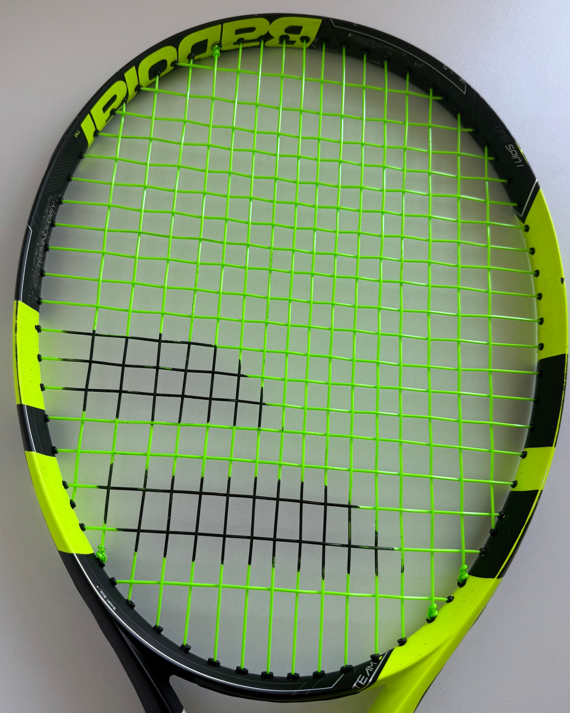Freshly strung with Solinco Hyper-G 16 at a tension of 50lbs